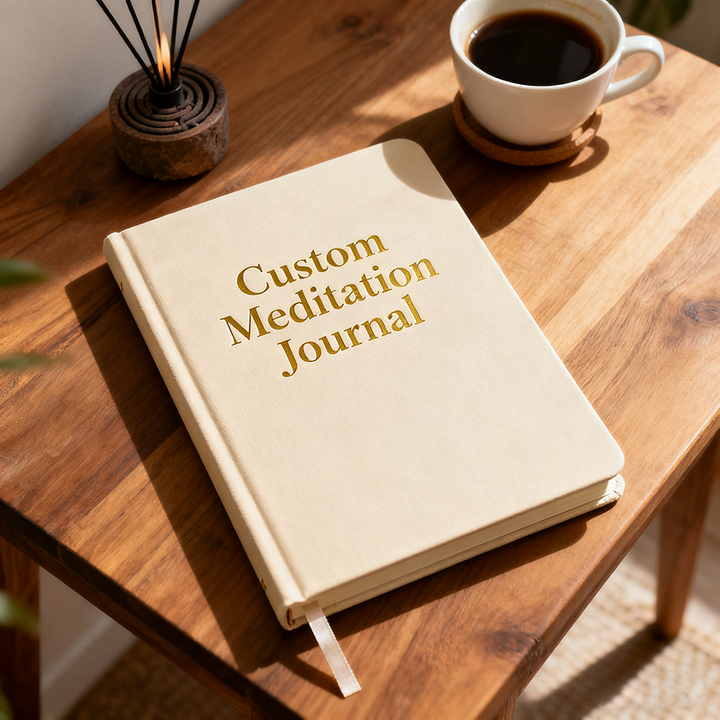Logo Design Impression Personnalisée Couverture Rigide A5 Tissu En Lin Vert Méditation Consciente Auto-Réflexion Journal De Prière
