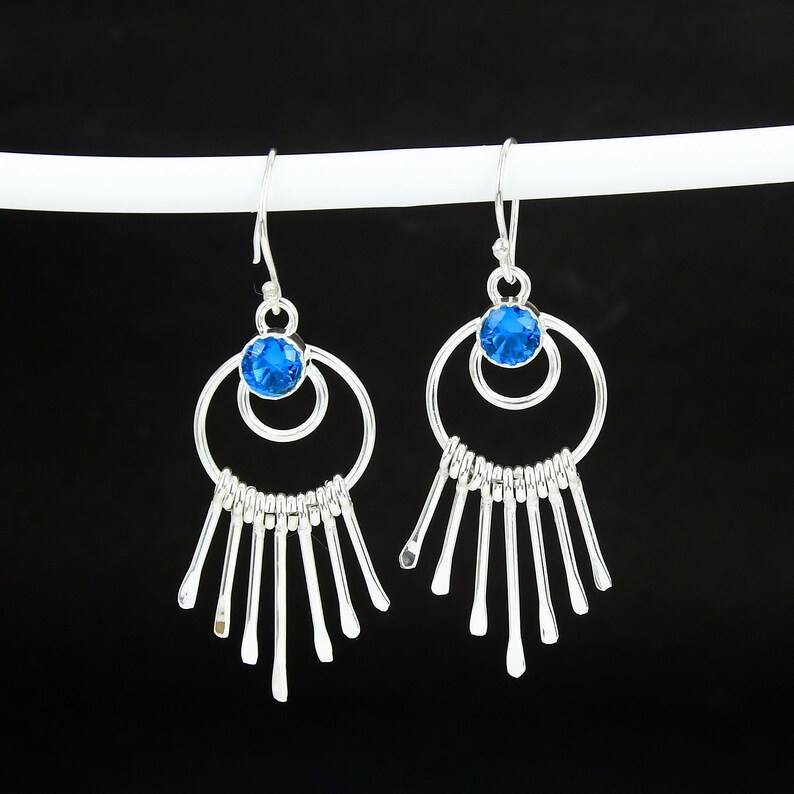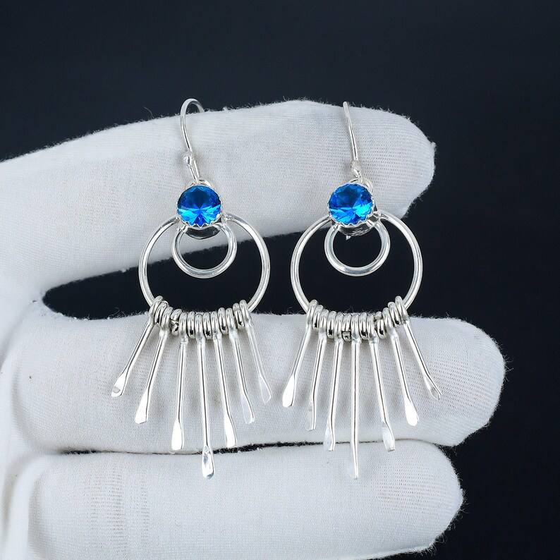 Blue Topaz Stud Earrings With Sparkling Dangle Gemstone Jewelry