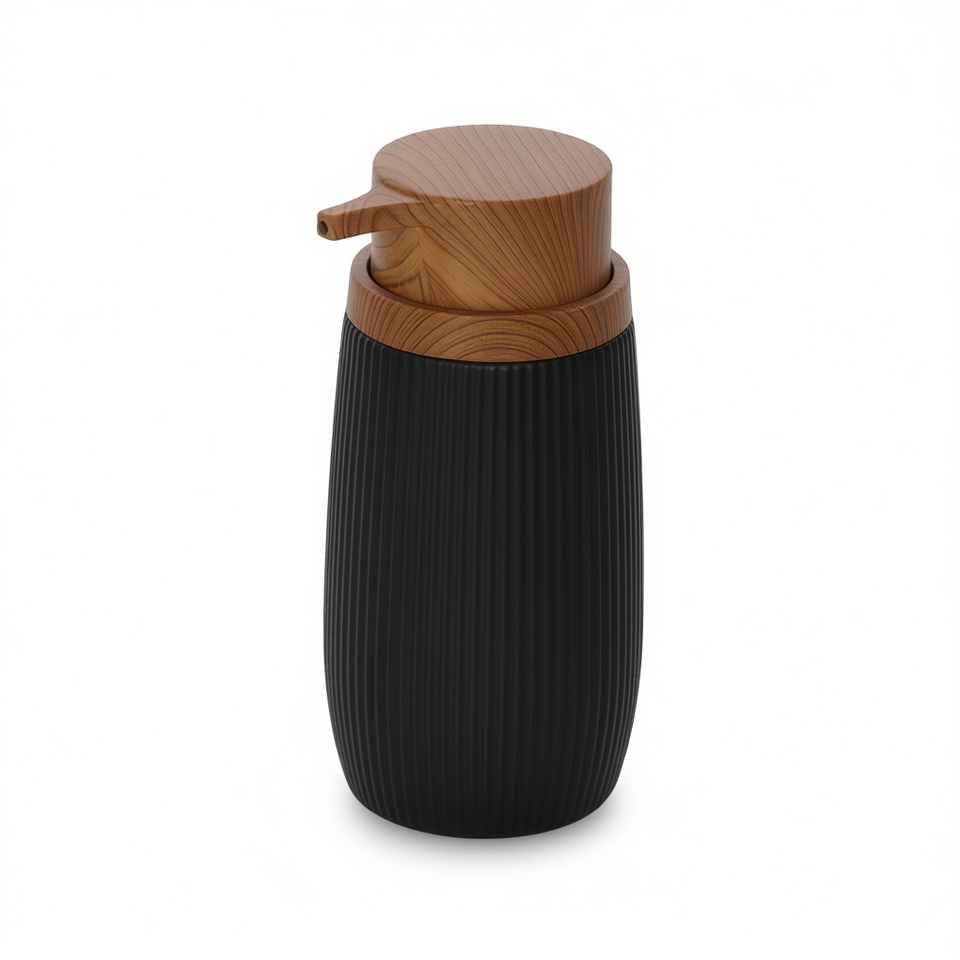 Distributeur de savon liquide en céramique noire London, diamètre 8 cm, hauteur 15,8 cm