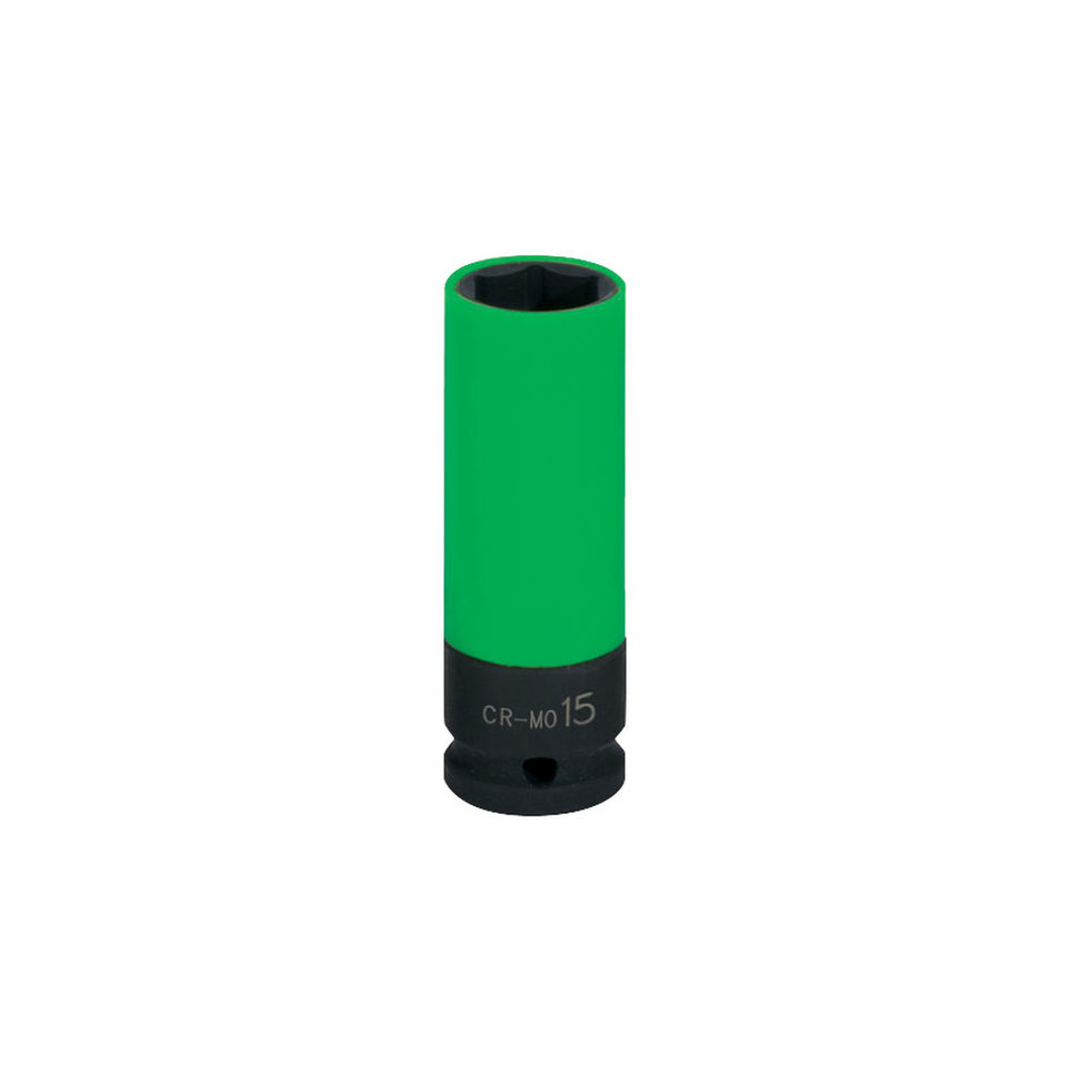 Jeu de douilles à impact longues à 6 points Finition chromée Caractéristiques hexagonales carrées vertes de qualité bricolage pour réparation de jantes en aluminium OEM personnalisable 15 mm