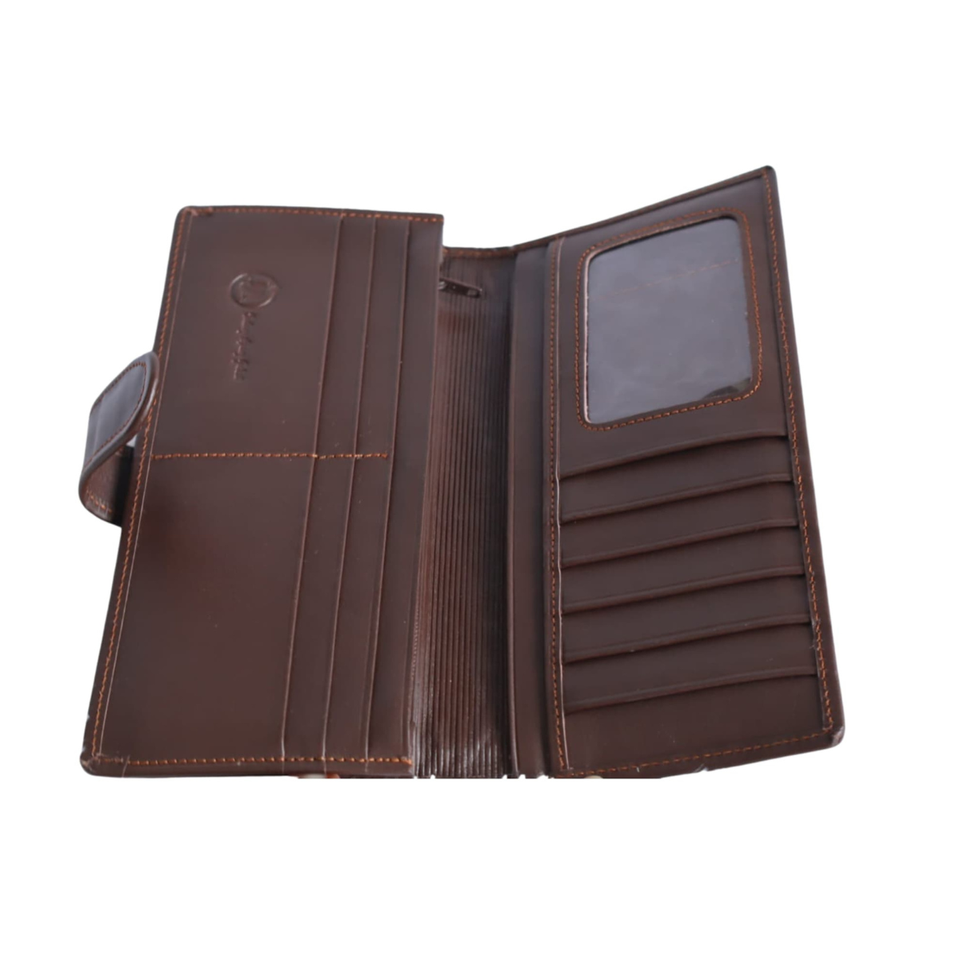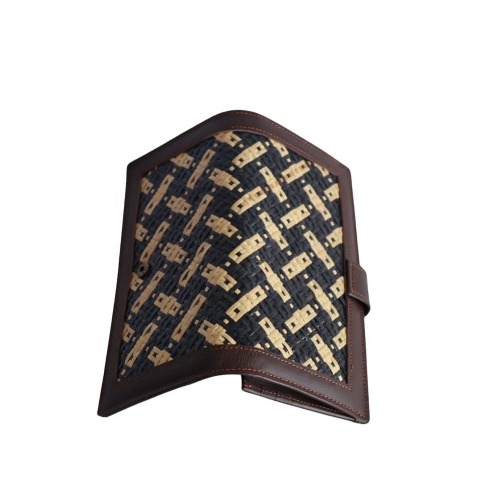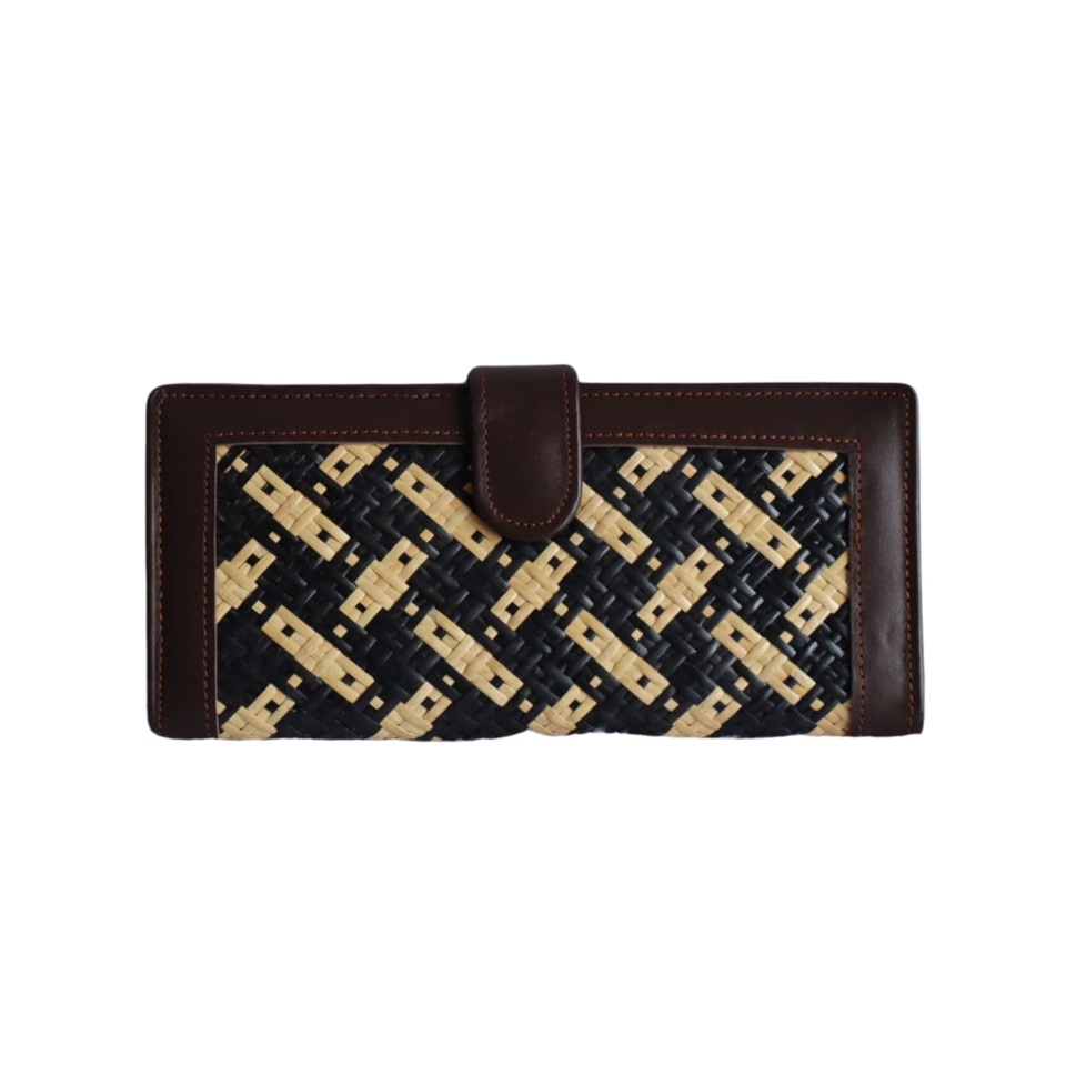 Portefeuille long à clip avec fermeture ouverte, en cuir véritable et rotin, sac à main tendance pour femme, éco-responsable, d'Indonésie, Indang Apang Galeri