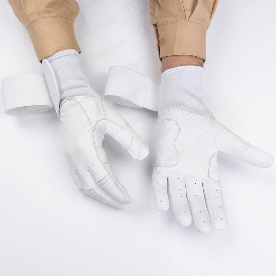 Longue manchette couleur blanche sur mesure Softball frappeur gants de sport véritable peau de vache Cabretta cuir gants de Baseball gants de frappeur