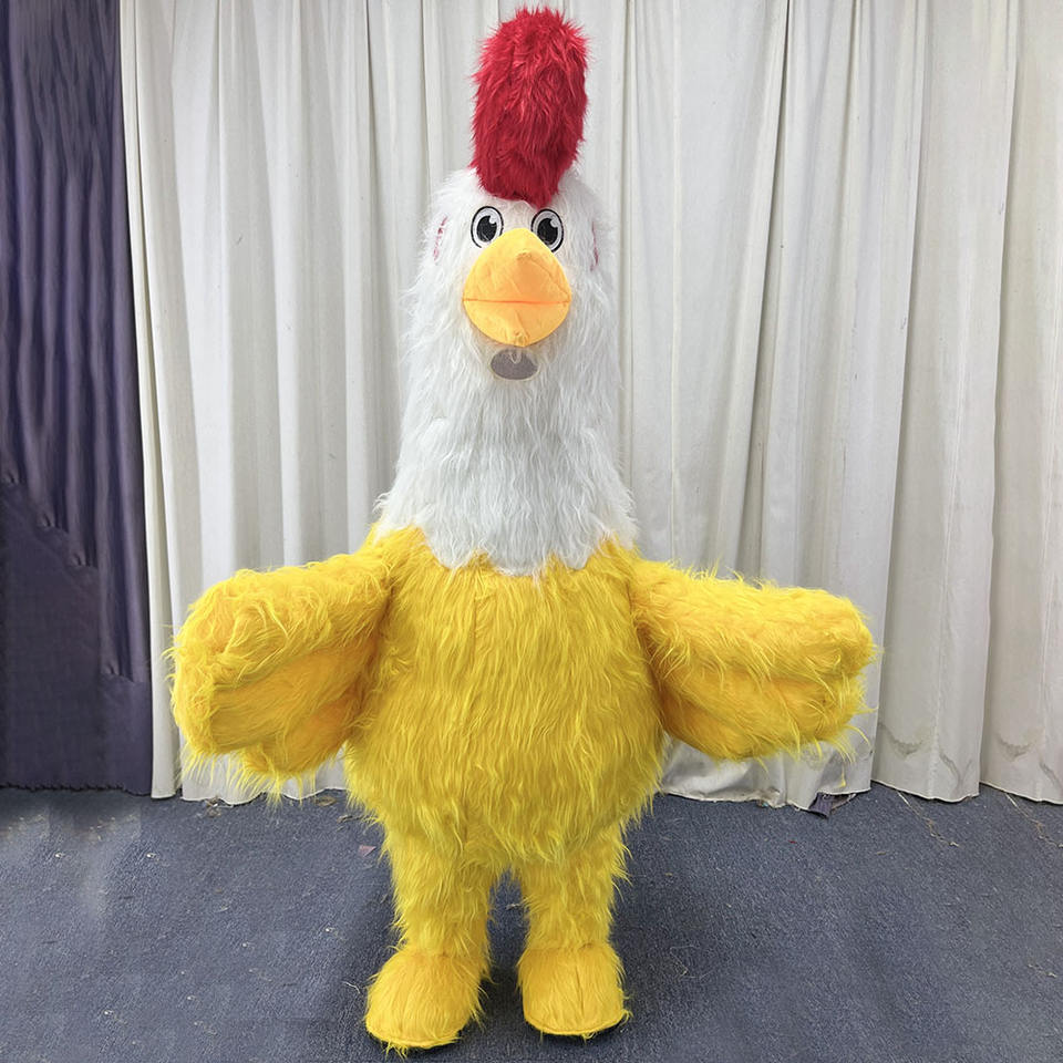 Costume de mascotte gonflable de poulet à longue fourrure 2/2,6 m Coq Costume de cosplay d'anime personnalisé