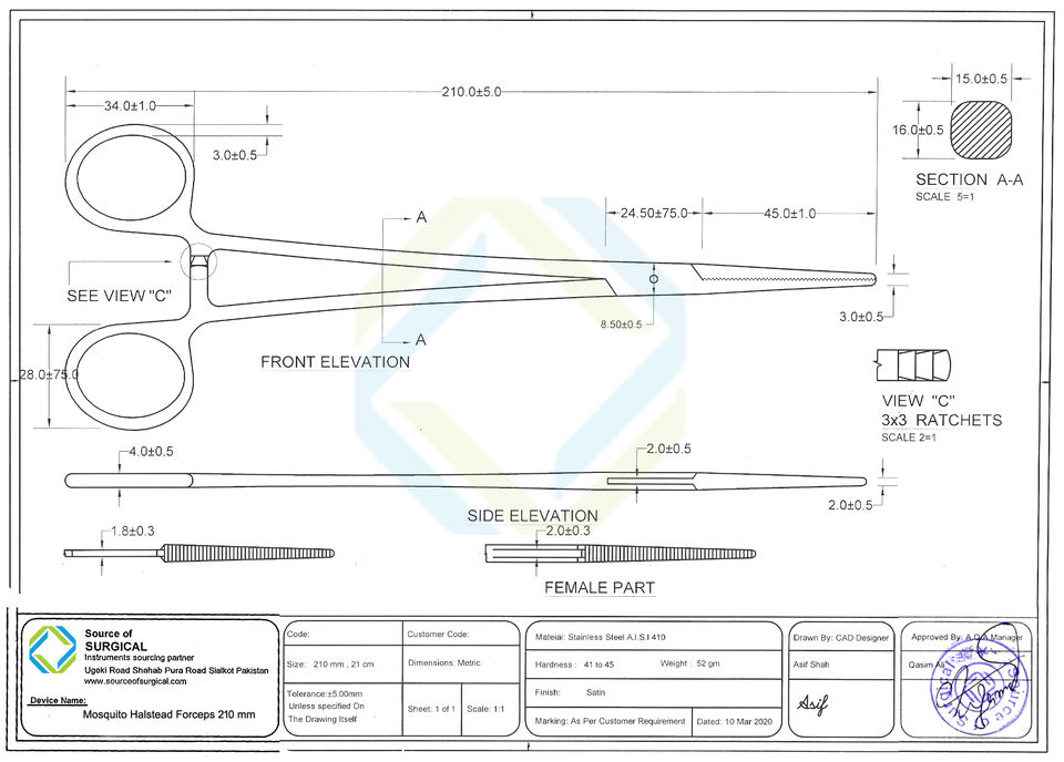 Instruments chirurgicaux manuels à long manche Pince Halstead anti-moustiques en acier inoxydable Base d'outils chirurgicaux