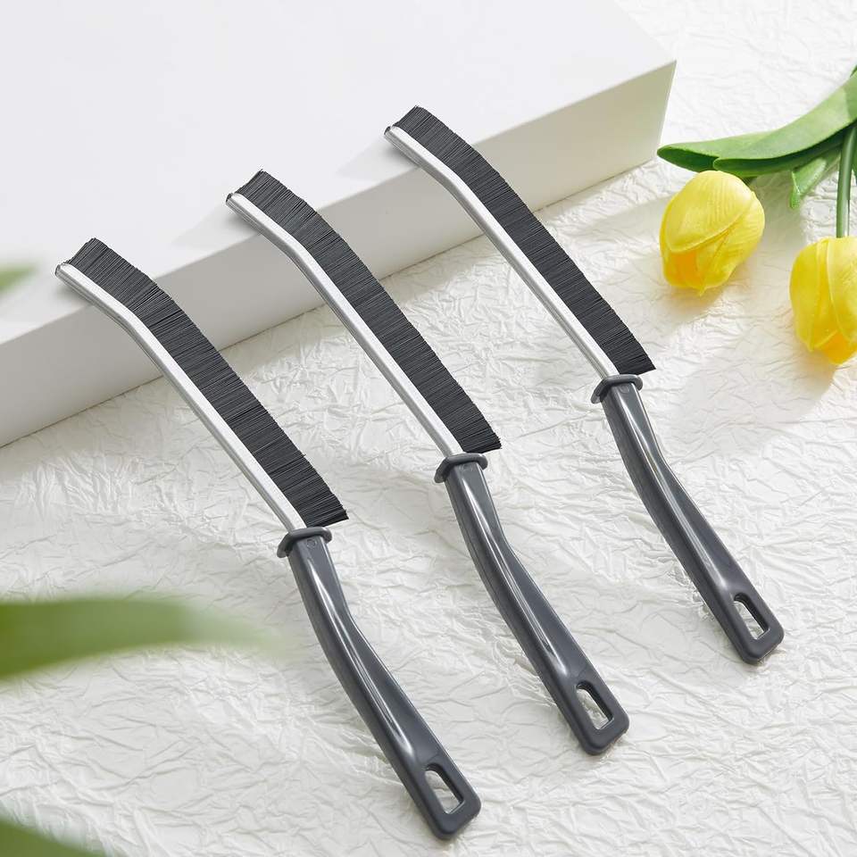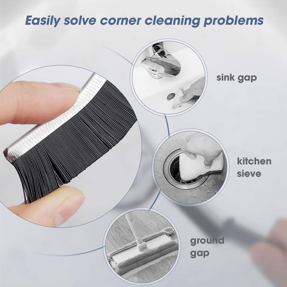 Brosse de nettoyage écologique à long manche en nylon pour sols de cuisine, carrelages PP et joints de carrelage, avec raclette pour joints profonds