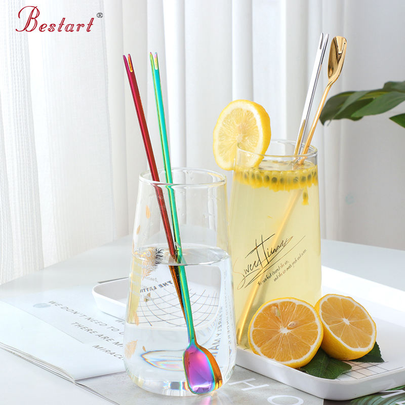 Fourchette et cuillère à cocktail en acier inoxydable à long manche pour mélanger et servir lors de fêtes