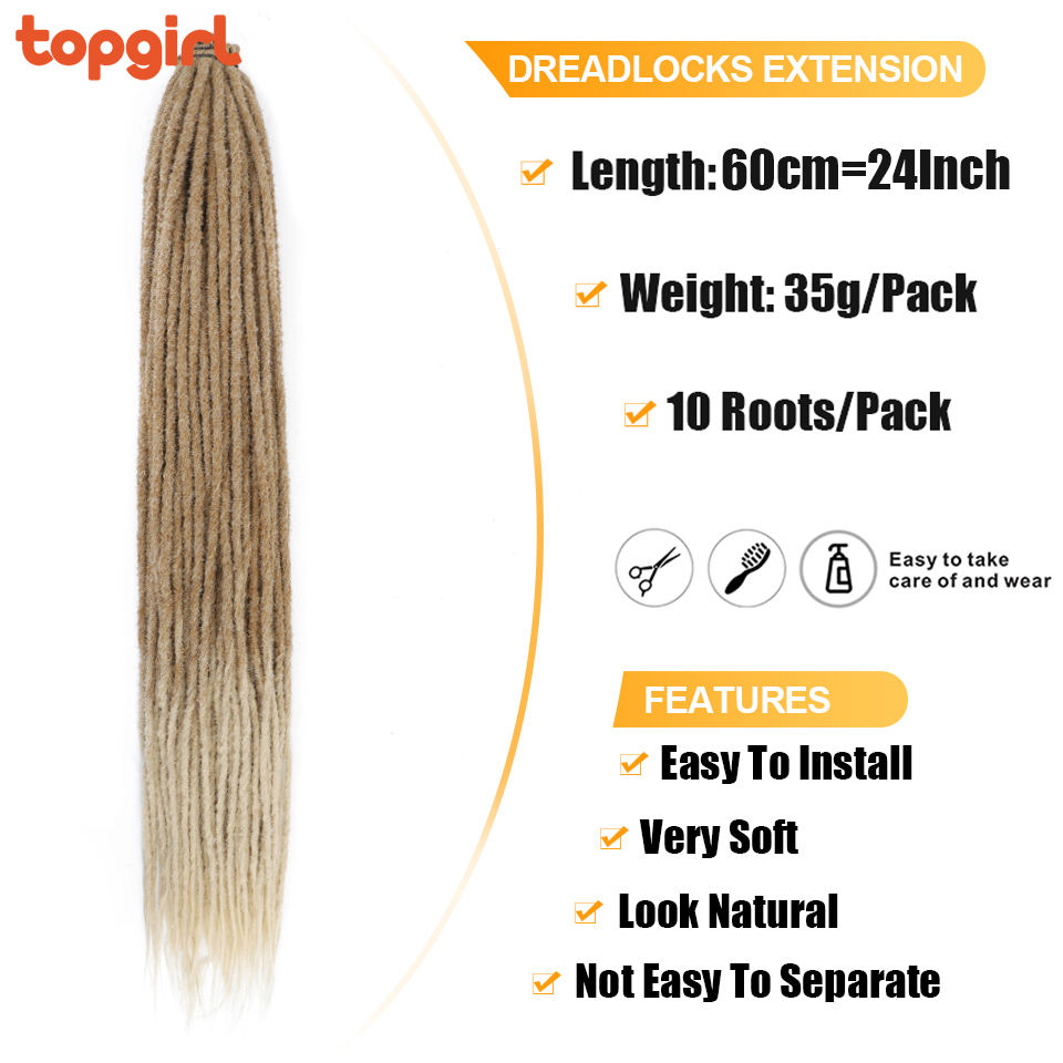 Longs dreadlocks faits à la main accessoires naturels doux blond artificiel dread locks Crochet Extension de cheveux synthétiques pour les femmes noires