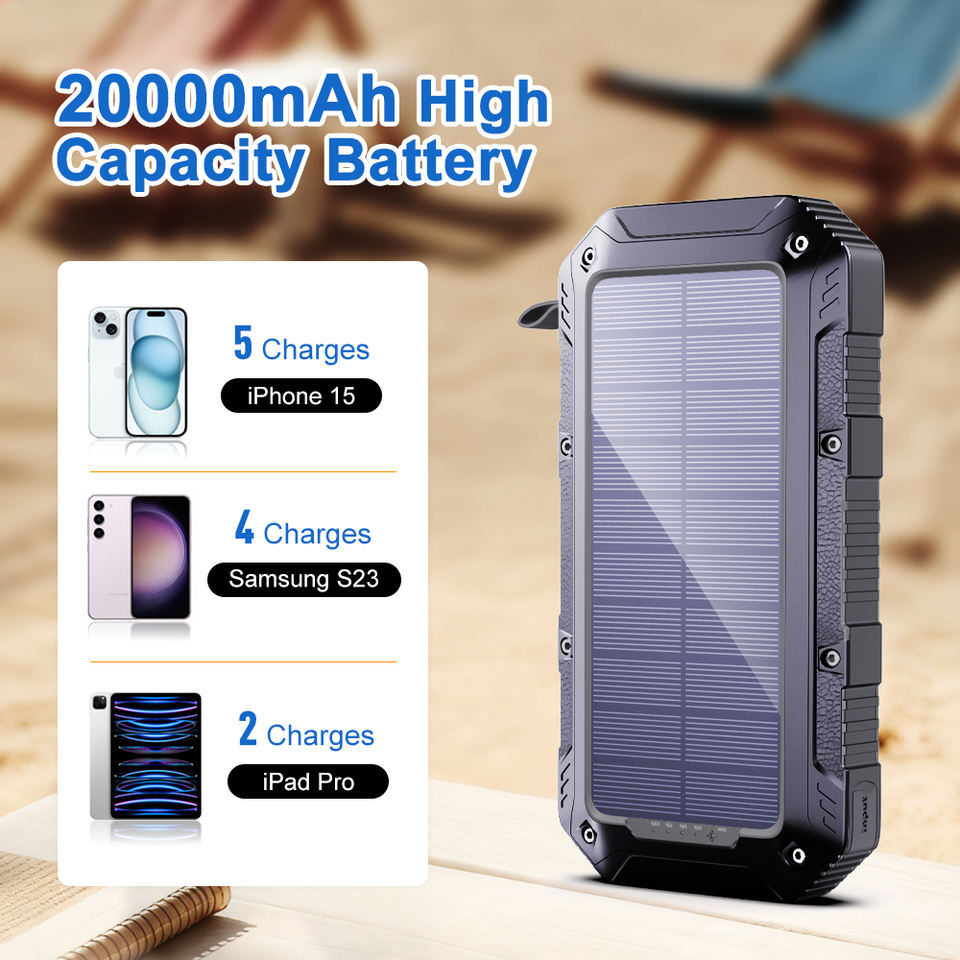 Portable, Batterie portable solaire, Imperméable, Haute Capacité, Avec câble