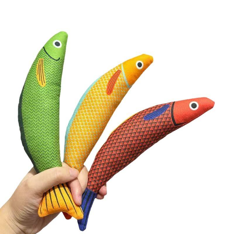 Jouet à mâcher durable en forme de poisson à la catnip pour chats, jouet pour chat avec impression en peluche, design sonore apaisant, fournitures pour animaux de compagnie