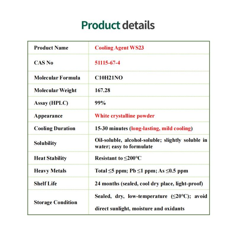 Agent de refroidissement longue durée WS-23, prix en gros, qualité alimentaire/cosmétique, agent de refroidissement pur en poudre WS-23