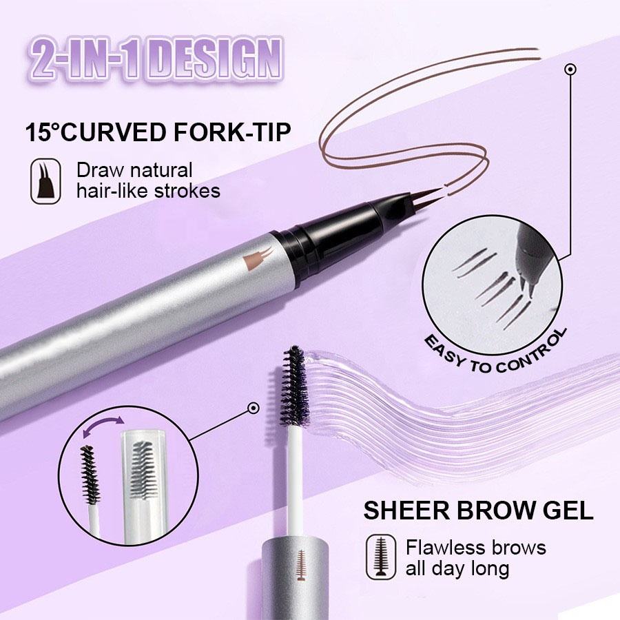 Crayon à sourcils 2-en-1 longue tenue et durable, imperméable, avec brosse et cire à sourcils