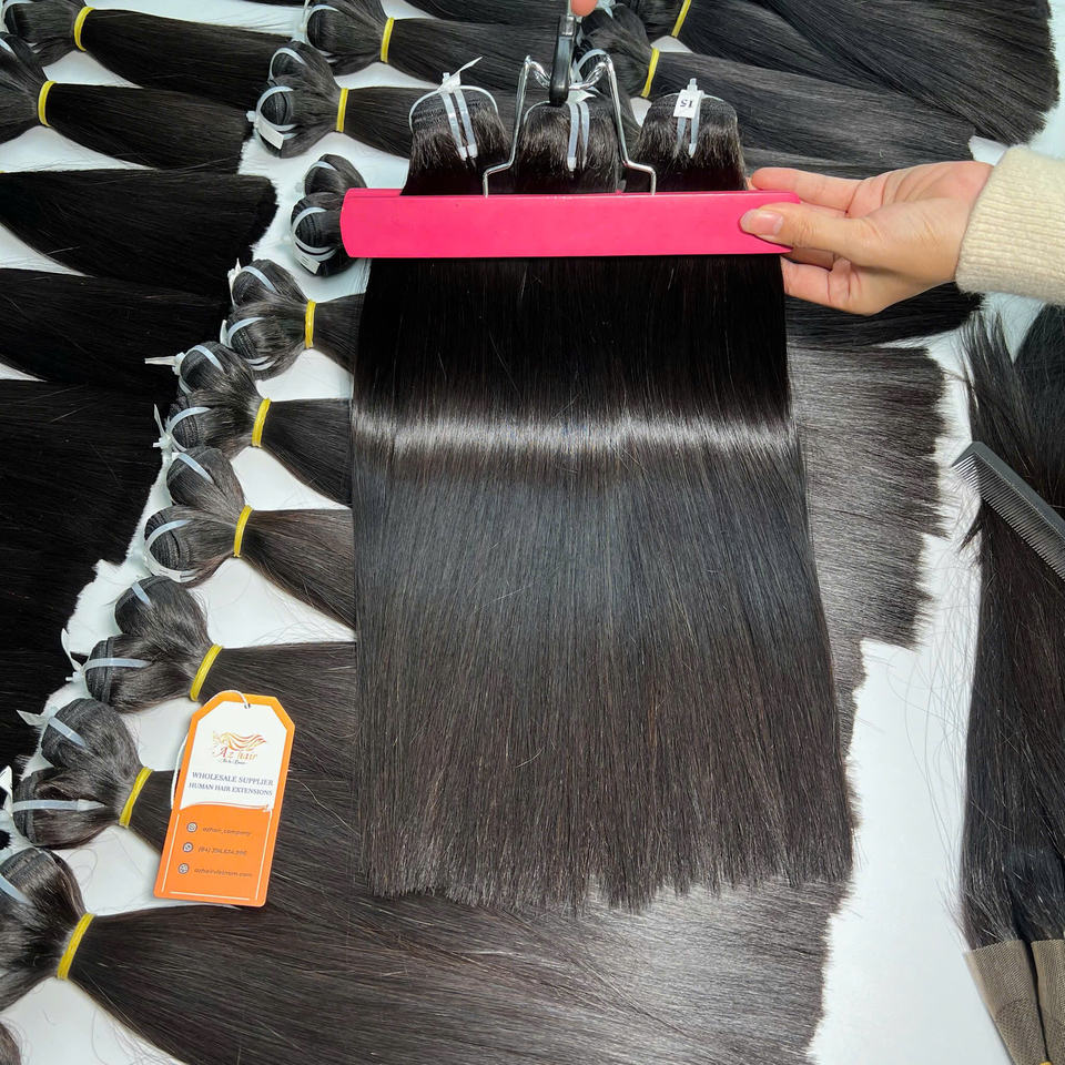 Extensions de cheveux alignées par cuticules brutes de longue durée vietnamiennes 100% cheveux humains soyeux Super Double dessiné os droit