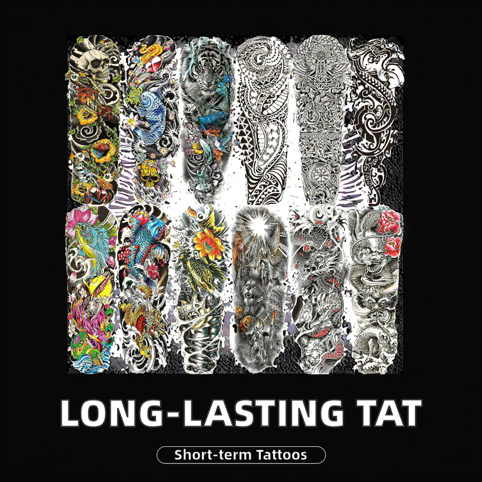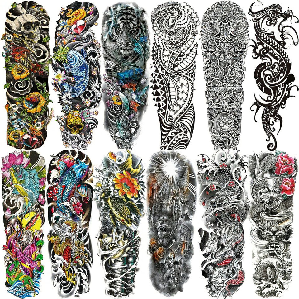 Autocollants de tatouage temporaires à bras complet imperméables de longue durée pour hommes et femmes tatouages à manches réalistes