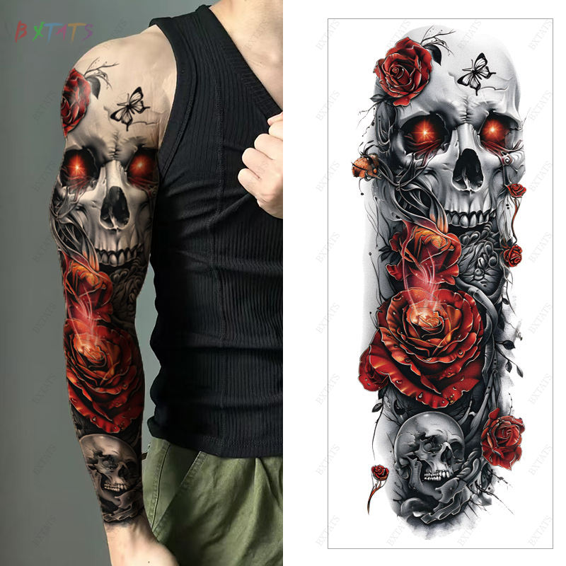 Conception tribale d'autocollant de tatouage temporaire de bras complet de longue durée et sûre pour le tatouage de corps de main et de douille des hommes