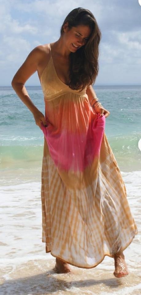 Robe longue coupe ample légère Boho Maxi Tie Dye avec décolleté en "V" à l'avant et à l'arrière pour les étés