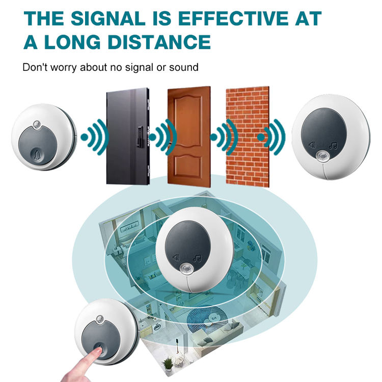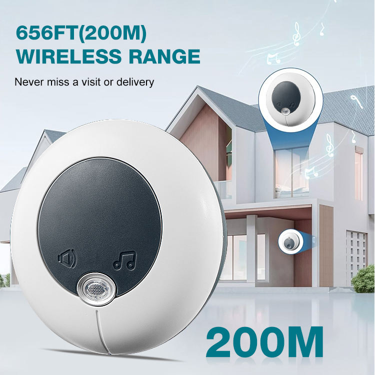 Sonnette Sans Fil Étanche IP44, Longue Durée de Vie, pour Bureau et Bâtiments, Portée 200m, 55 Mélodies, Prises UA EU UK AU