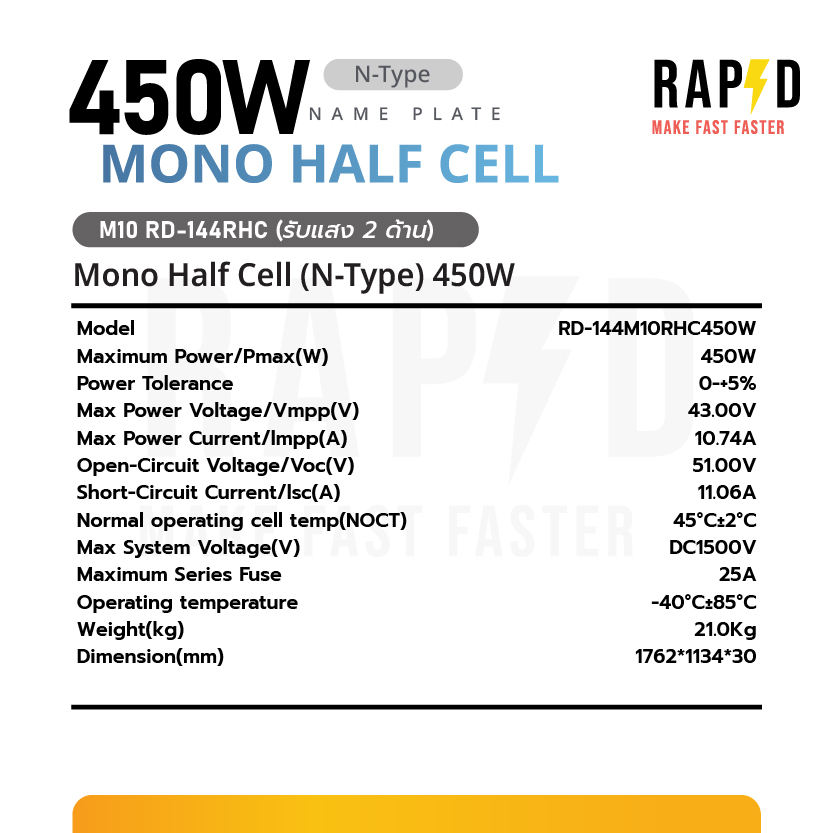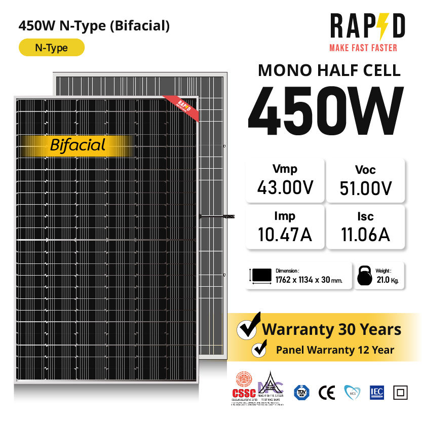 Solar cell 450W N- Type Mono Half Cell BifacialProduct name