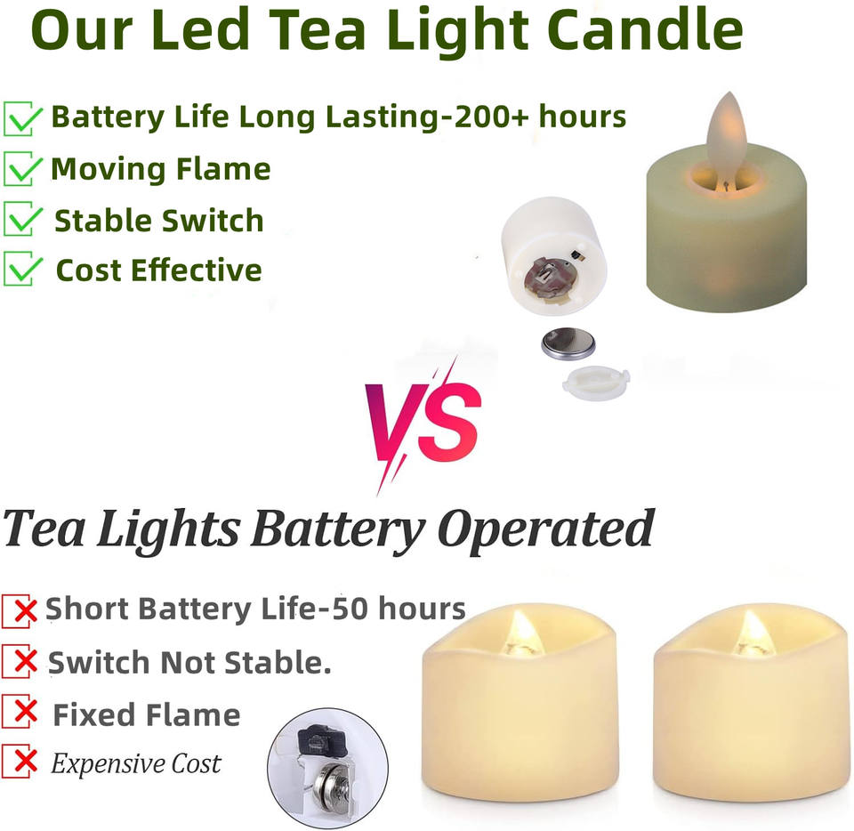 Bougie LED à piles à effet de flamme vacillante longue durée (plus de 200 heures) avec flamme mobile pour la décoration de Noël et de mariage