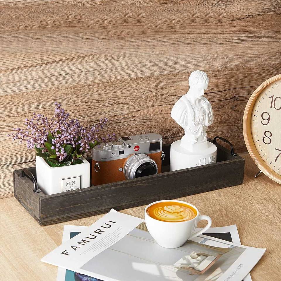 Plateau en bois rectangulaire long et étroit avec poignées Plateau de ferme rustique pour une utilisation dans la cuisine, la salle de bain, la chambre ou le salon