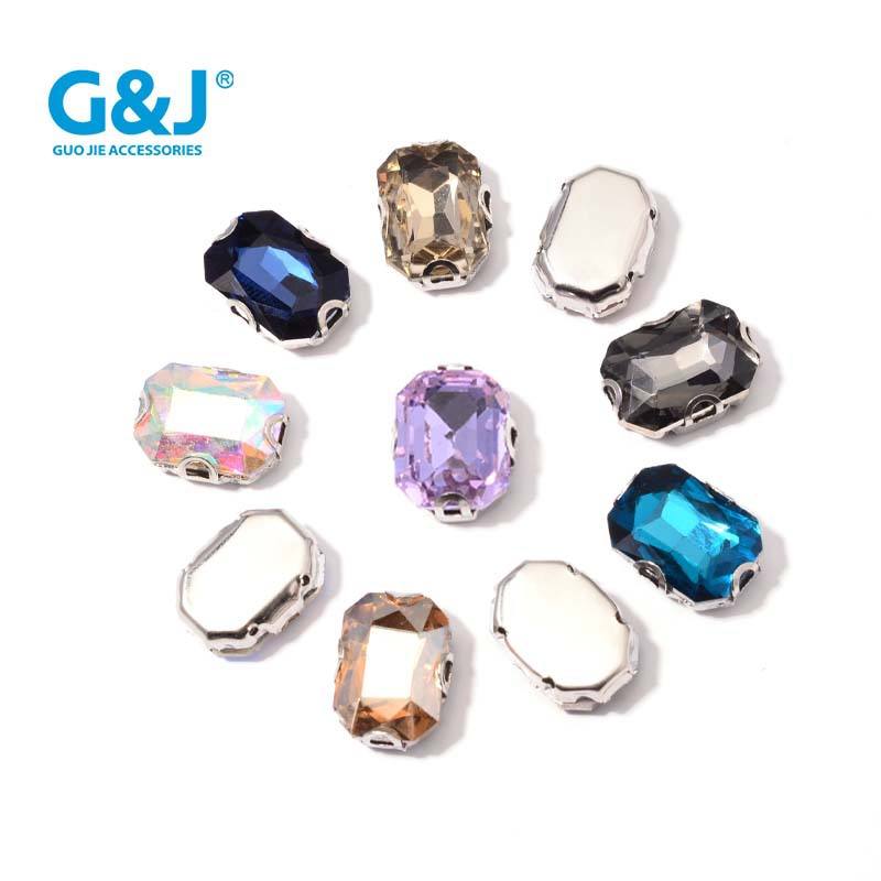 Longue griffe octogonale diamant robe de mariée col cousu à la main strass verre bijoux à bricoler soi-même Flatback coudre sur la partie supérieure Hot-Fix