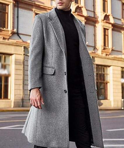 Manteau long pour homme, trench-coat surdimensionné, longueur au sol, vêtement d'extérieur chaud pour l'hiver, trench-coat uni, tricoté, coupe-vent, en laine, respirant