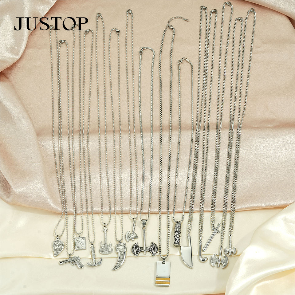 Collier long avec pendentif, OEM/vente en gros, personnalisable, en acier inoxydable étanche, plaqué or ou argent, style européen et américain, chaîne à maillons unisexe