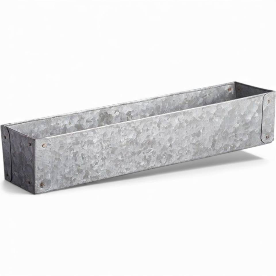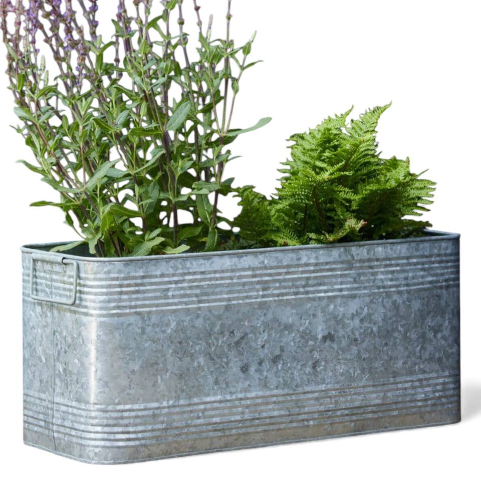 Long Rectangular Galvanized Metal Planter Box Rustic Herb & Flower Trough for Indoor Home Decor