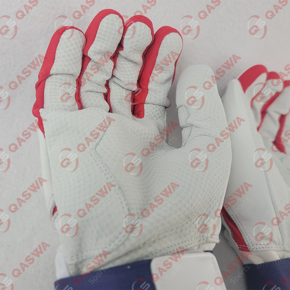 Long rouge bleu blanc couleur Cabretta cuir Baseball gants de frappe respirant Logo personnalisé gants de Baseball pour la pratique du jeu