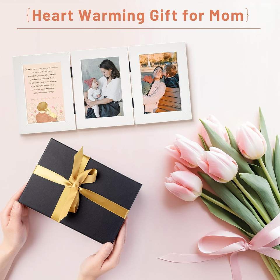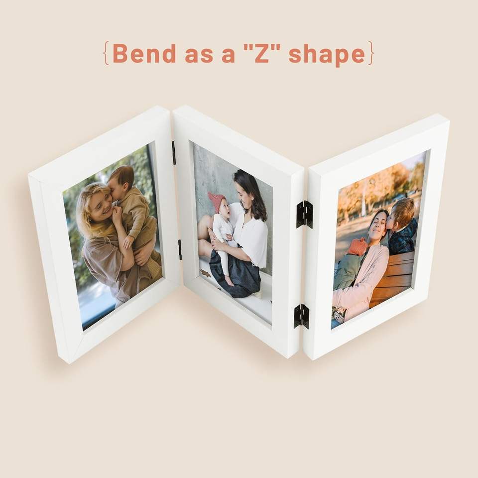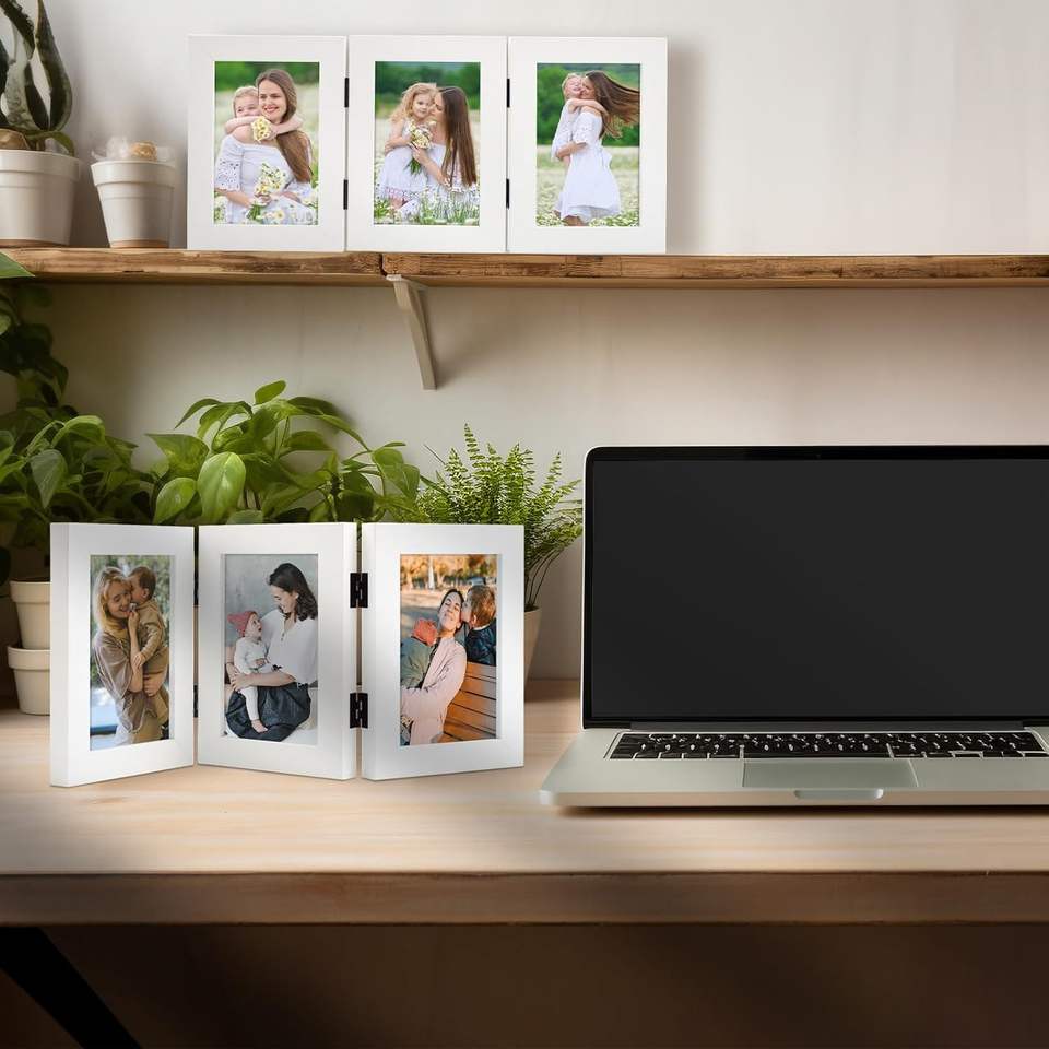 Cadre photo en bambou à trois images Long River, écologique, pliable à trois volets, pour collage de bureau, avec verre véritable, pour affichage familial, moderne et personnalisé