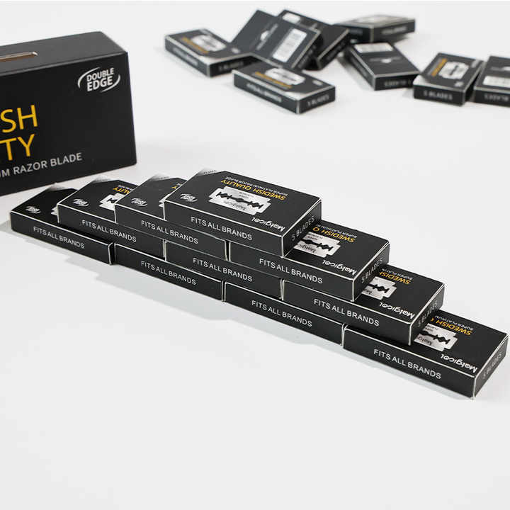 Lames de rasoir à double tranchant, qualité suédoise, longue durée de vie, 100 pièces, échantillon gratuit, aiguisées, écologiques, sûres et économiques pour barbier
