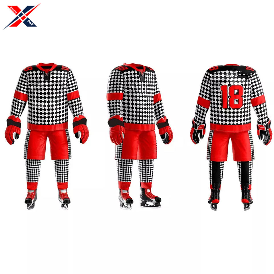 Long Sleeve Black and Red Block Stylish Newest Product Sports Team Wear Best Material Use Adult Ice Hockey Uniforms