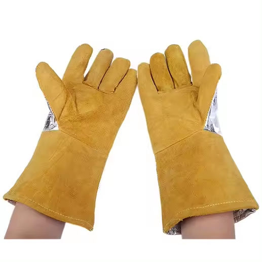 Gants de sécurité anti-coupure en cuir de vachette à manches longues, résistants à la chaleur, imperméables, isolés par feuille d'aluminium pour barbecue et pompiers
