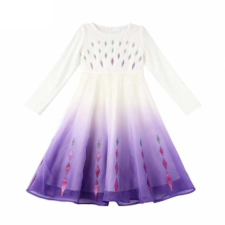 Robe de princesse pour filles à manches longues, tissu dégradé, détails scintillants, pour les spectacles de scène et les fêtes d'hiver