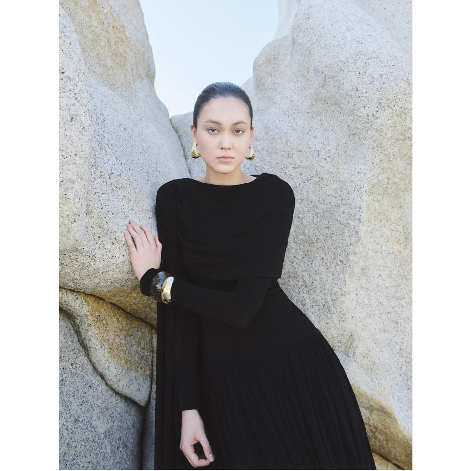 Long Sleeve Dress ODM Service Elegant DANNY DRAPED LONG DRESS Women Wholesale 95% Acetate 5% Spandex Dresses From Vietnam
