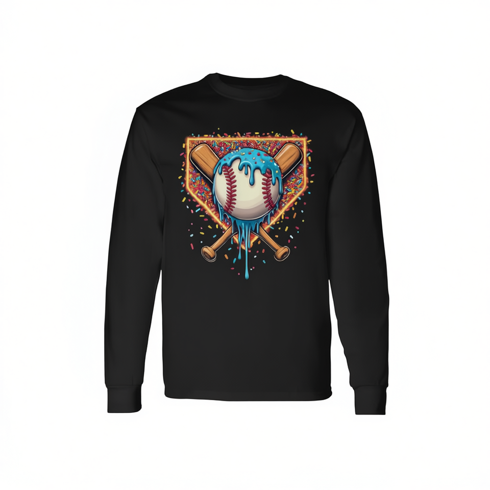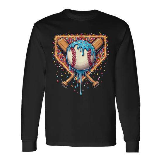 Long Sleeve Fun Baseball Apparel for Boys Drip Home Plate Design T-Shirt-Promotional Product