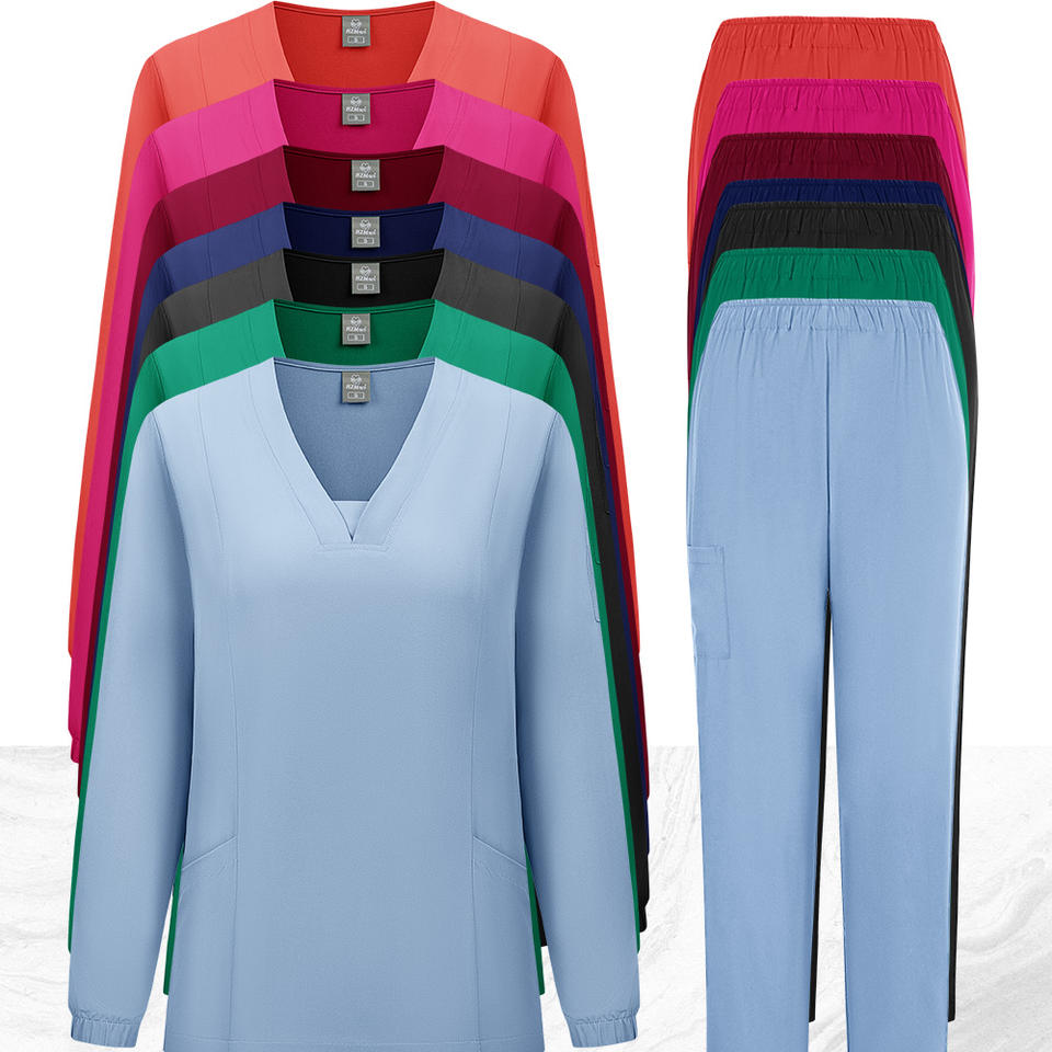 Ensemble de gommage médical à manches longues couleur unie infirmière hôpital gommage uniforme costume uniformes chirurgicaux Salon de beauté clinique Spa vêtements de travail