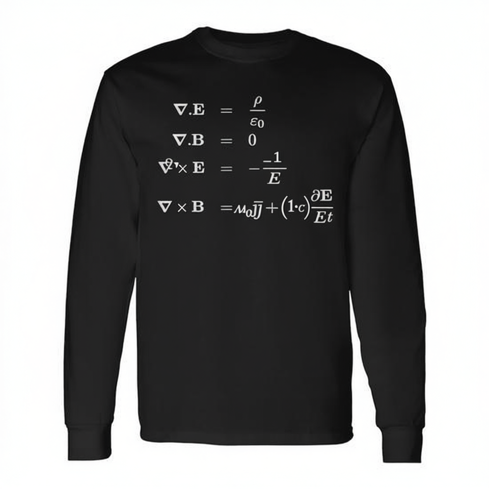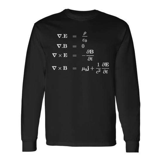 T-shirt promotionnel à manches longues sur le thème de la physique et des sciences avec motif des équations de Maxwell sur l'électromagnétisme