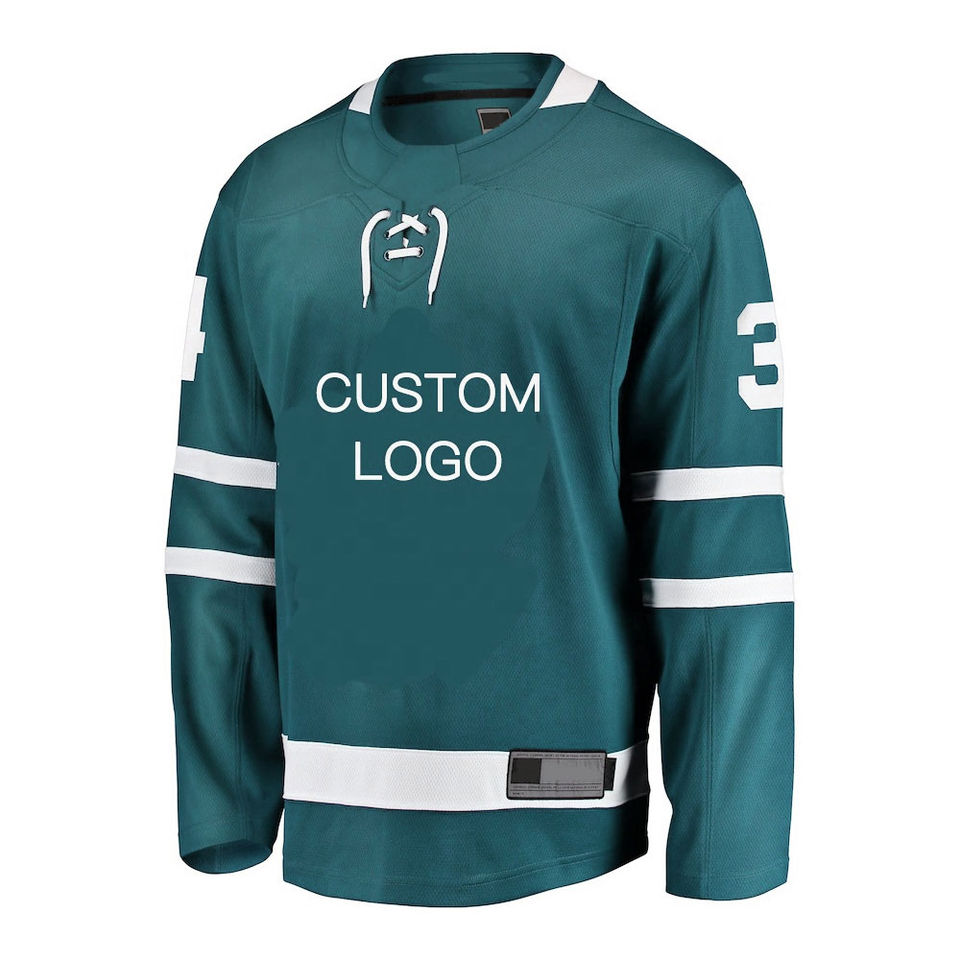 Maillot de hockey sur glace à manches longues, imprimé, respirant, à séchage rapide, antibactérien, en polyester, coupe ajustée, col en V, vente en gros personnalisée