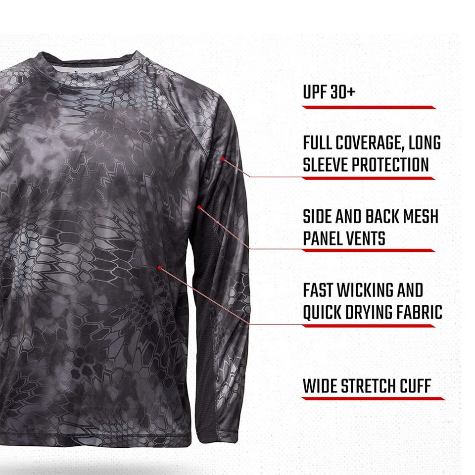 T-shirts de pêche et de chasse pour hommes à manches longues, séchage rapide, impression numérique, personnalisables, grandes tailles, UPF 50, anti-UV, respirants