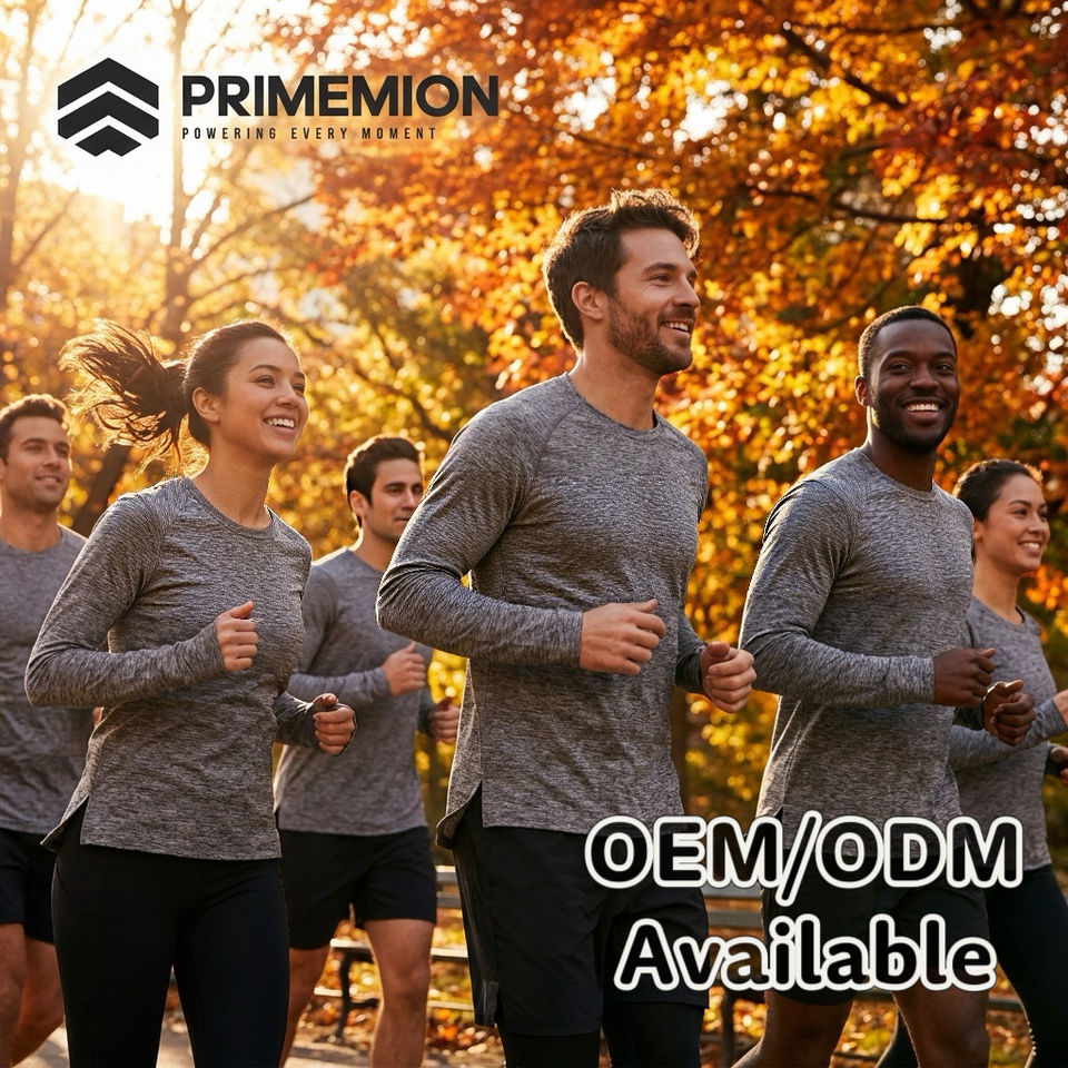 T-shirt de course à manches longues - Gris chiné - Ourlet fendu - Spandex/Polyester - Coupe ajustée - Respirant - Séchage rapide - Unisexe