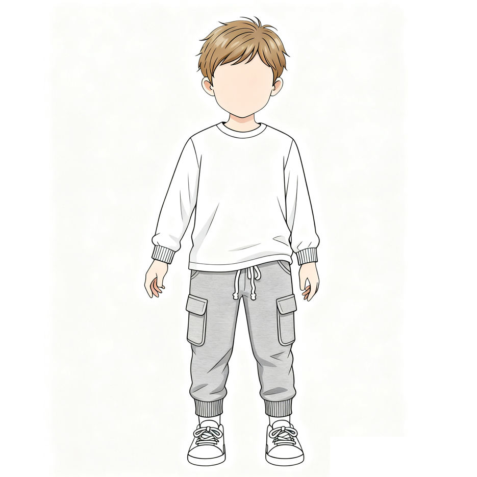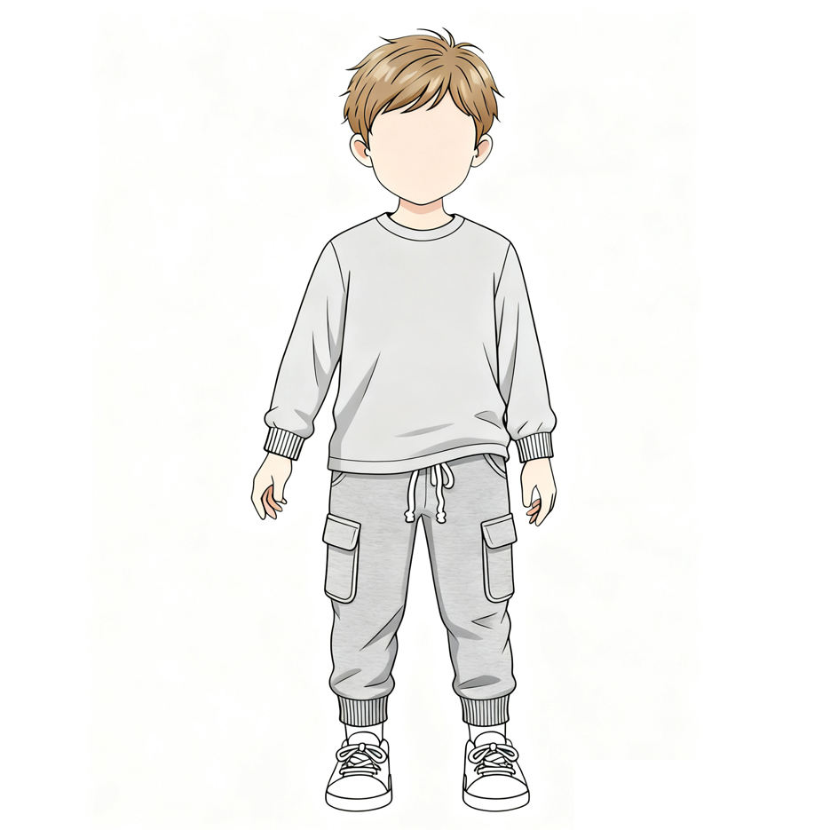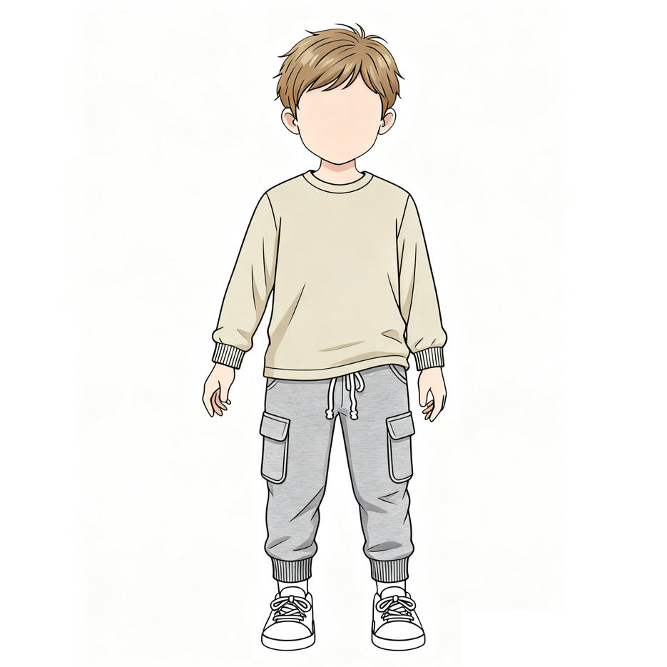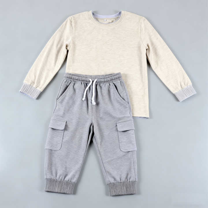 Ensemble de survêtement décontracté pour garçons 2025, haut à manches longues avec poignets côtelés, pantalon cargo avec cordon de serrage à la taille et poches, beige et gris