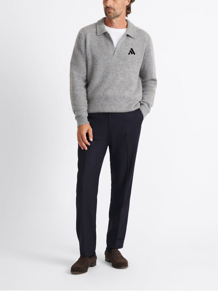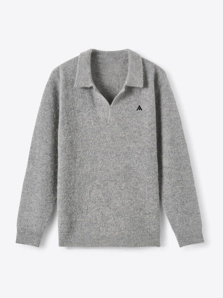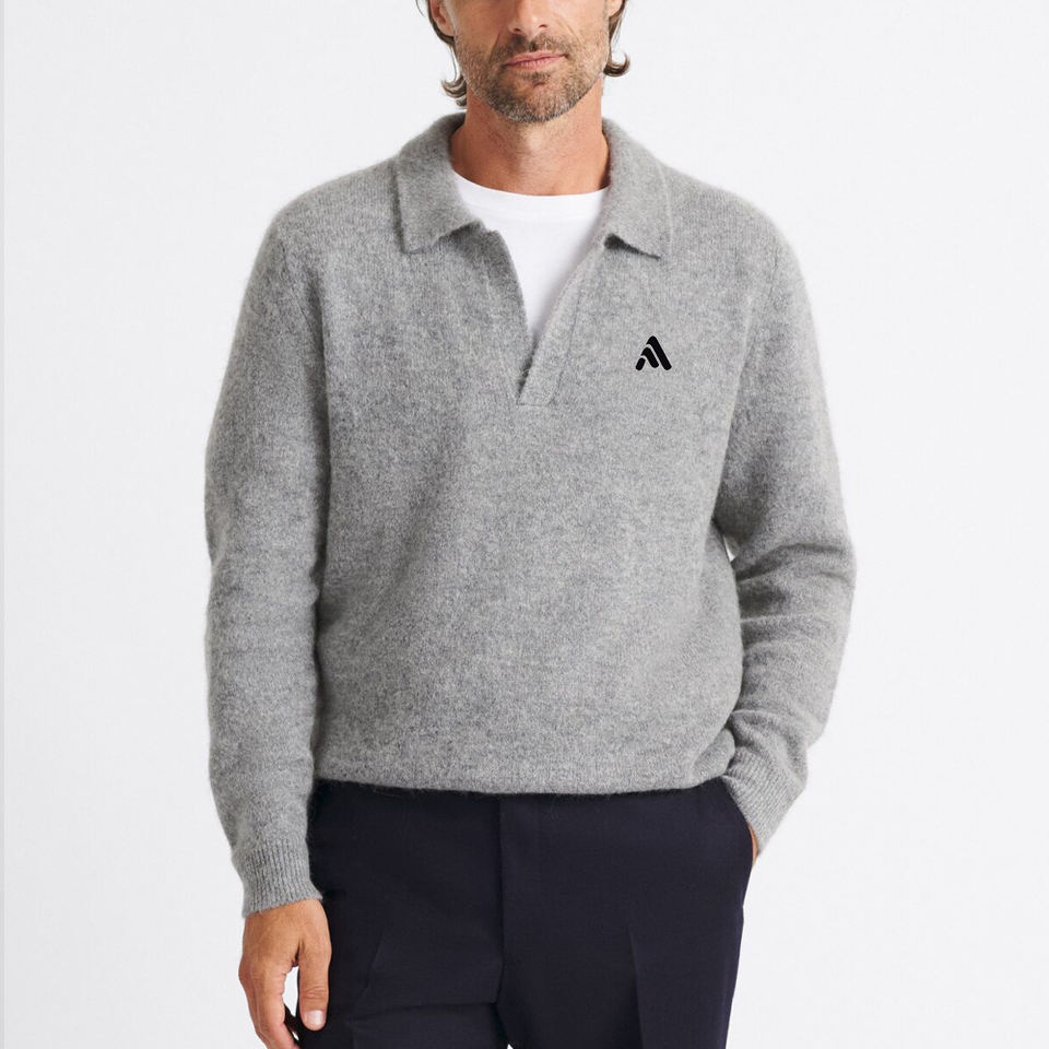 Pull en laine tricoté pour homme, manches longues, col rabattu, logo personnalisé sur le devant, taille plus, fin, 100% laine