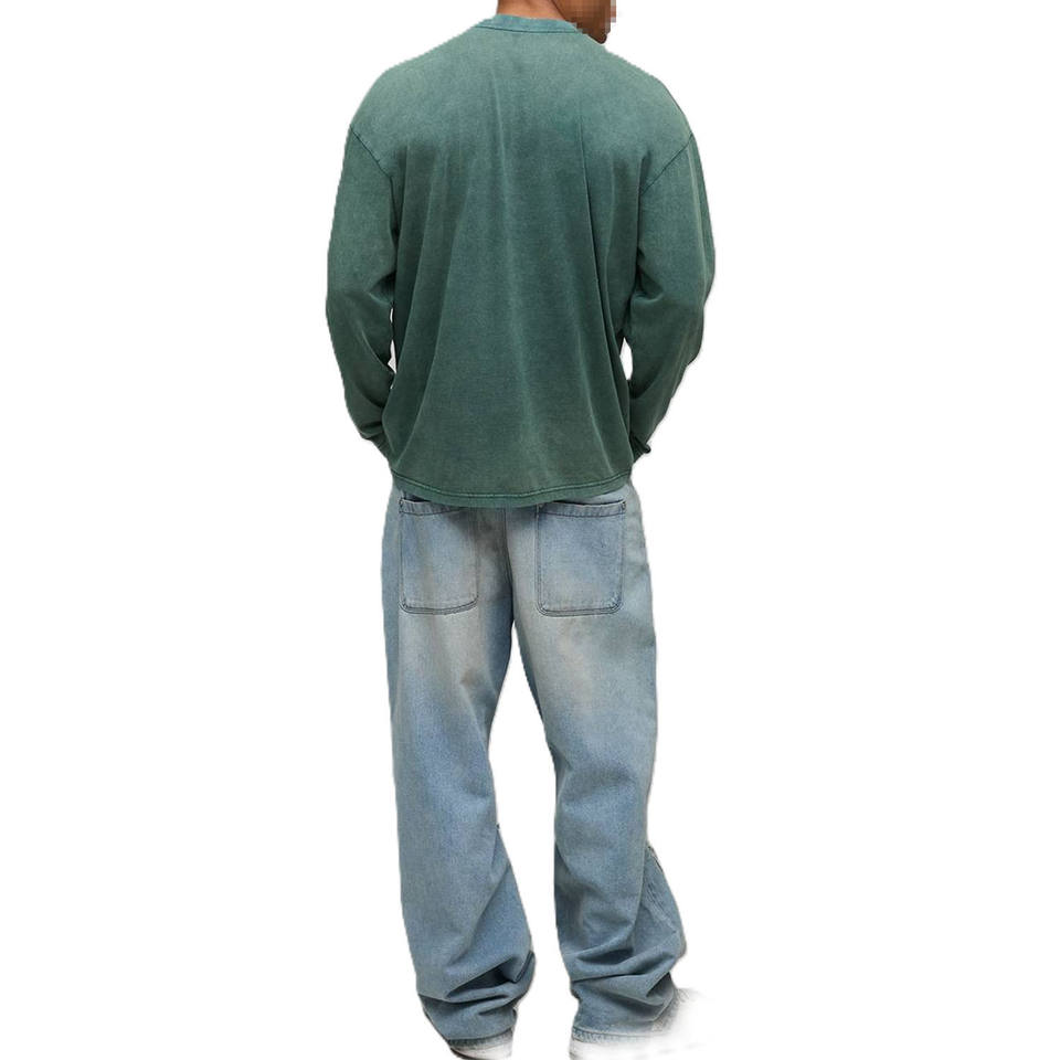 T-shirt pour homme à manches longues en coton délavé avec poche, coupe décontractée, fabrication OEM, marque privée, vêtements en gros