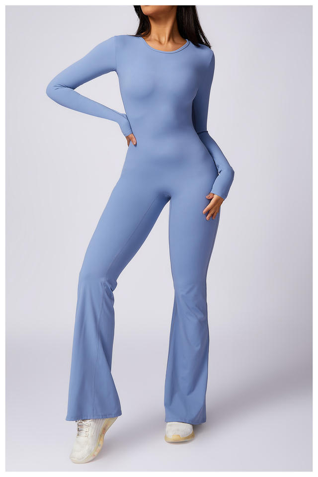 Long Sleeve and bellbottom pant Sexy Spring Open Back jumpsuit Women Training Yoga Sportswear Fitness Rompers Stretch Workout