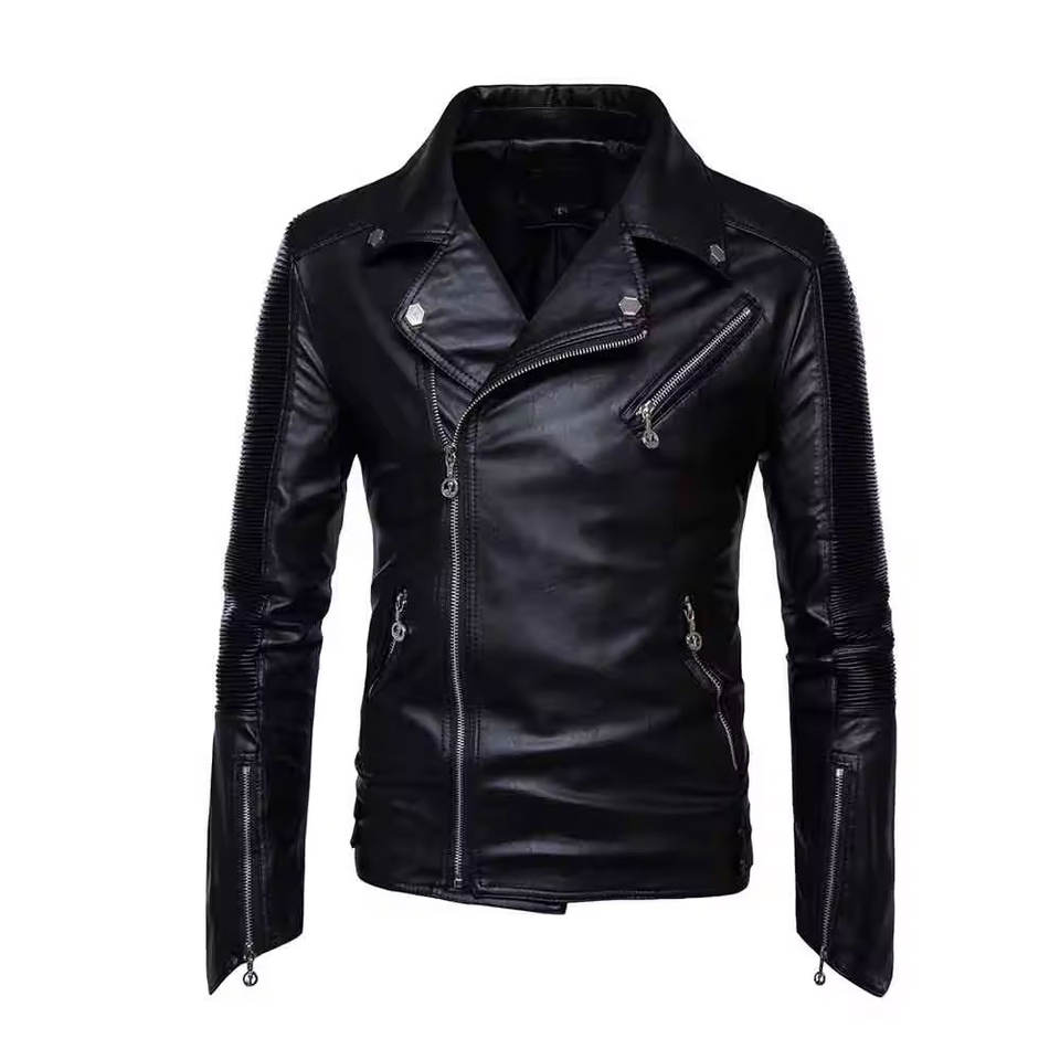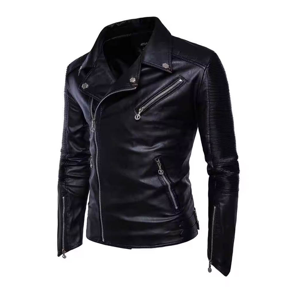 Vestes en cuir PU de style fourrure à manches longues de haute qualité avec poches zippées pour hommes, vêtements de sport, veste en cuir