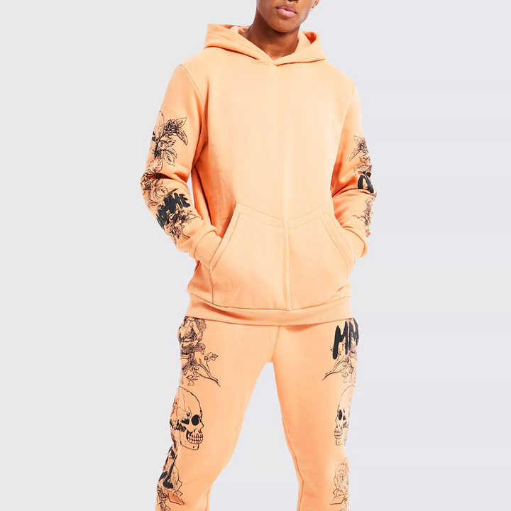 Survêtement manches longues imprimé bouffant pour hommes/Prix abordables Streetwear Survêtements imprimé bouffant pour hommes