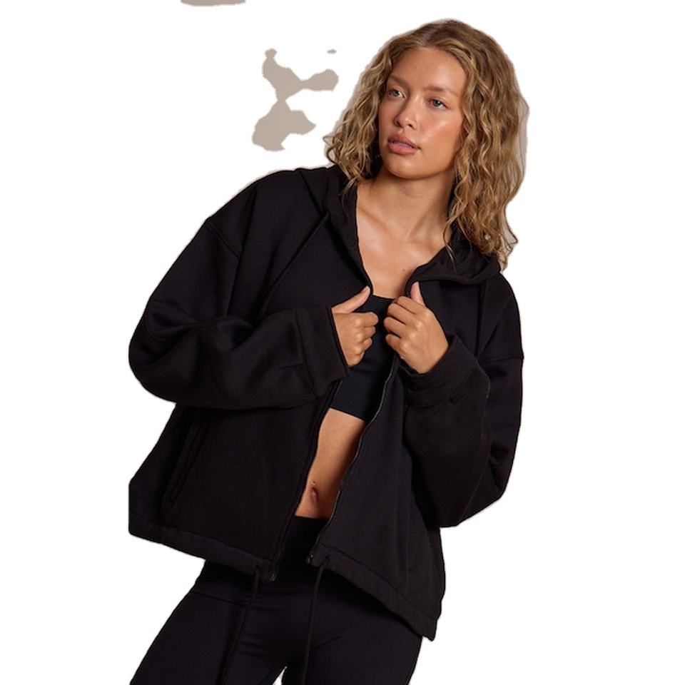Sweat-shirt à capuche sport décontracté personnalisé à fermeture éclair sur le devant, taille longue et fine, en polaire pour femmes, automne et hiver