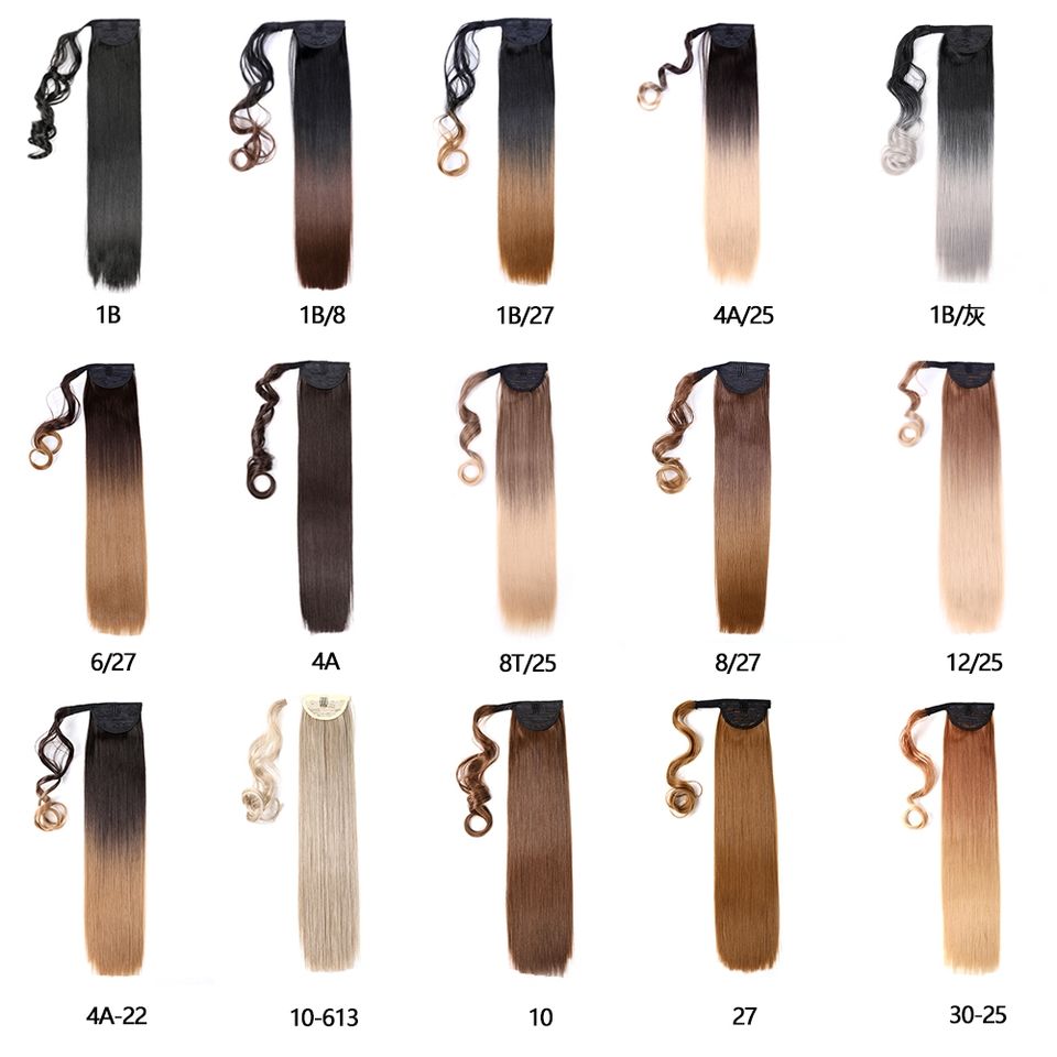 Extensions de cheveux synthétiques longues droites 22 pouces Clip dans les postiches Noir Blonde Enrouler autour des extensions de cheveux de queue de cheval
