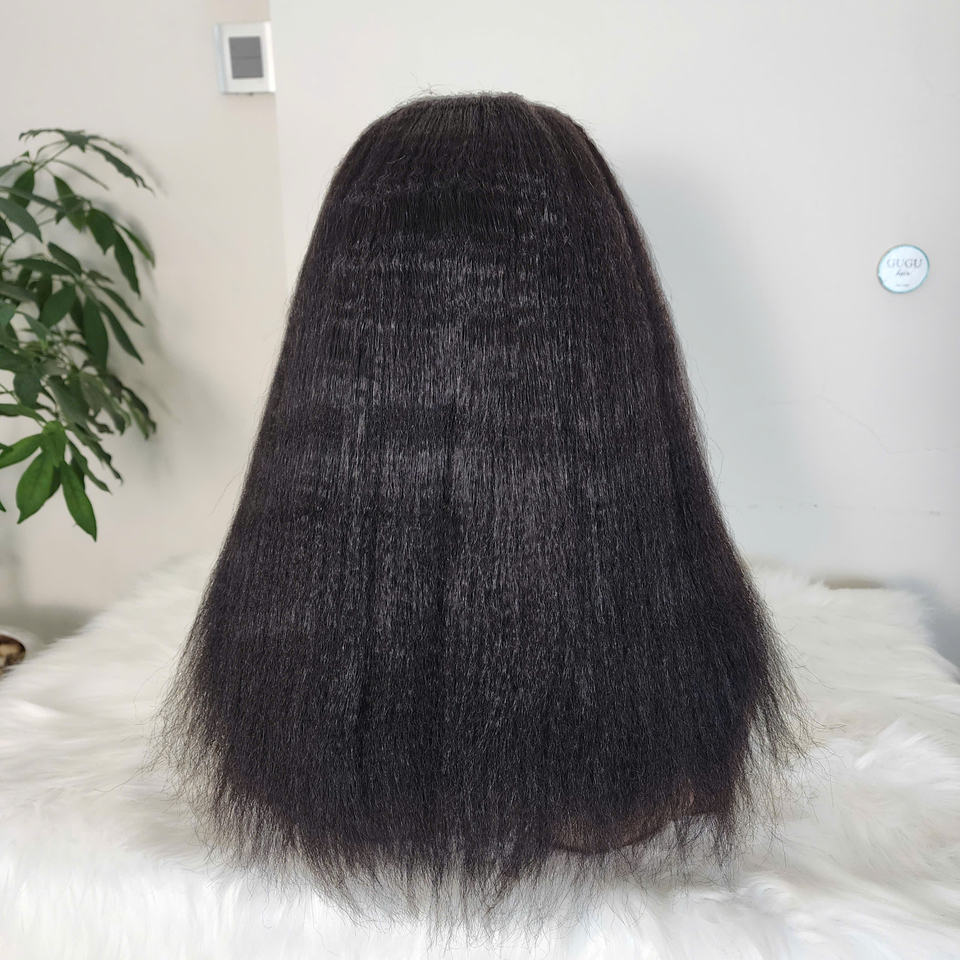 Perruque de cheveux humains vierges naturels crépus bouclés vietnamiens sans colle Petite dentelle HD longue ligne droite taille alignement des cuticules