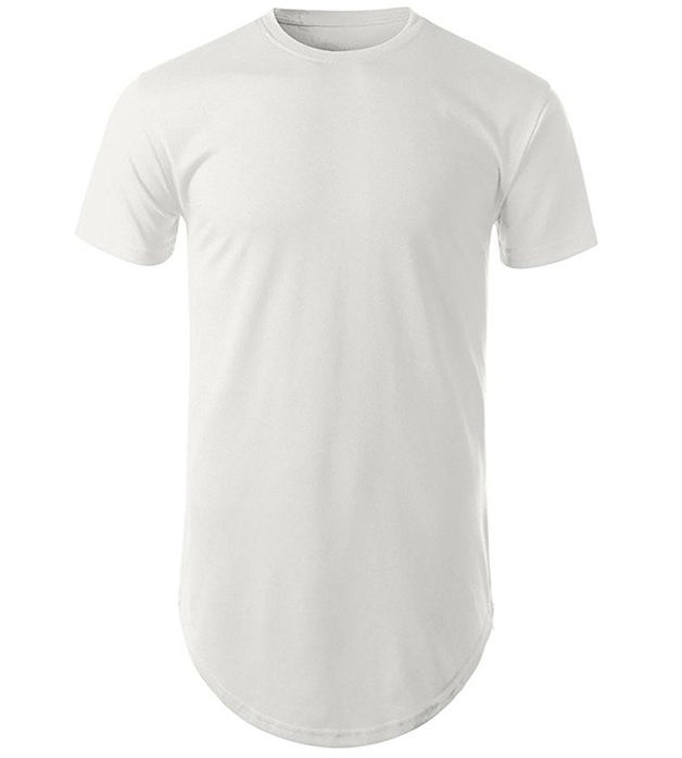 T-shirt à manches longues en jersey de coton 100% décontracté pour homme, ligne longue surdimensionnée, coupe ajustée, ourlet incurvé, motif uni, coupe haute